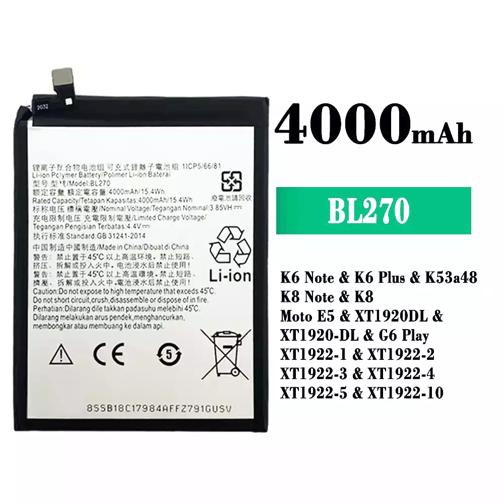 Акумулятор BL270 для Lenovo K6 Note / K6 Plus / K53a48 / K8 Note / K8 / Moto E5 / XT1920DL / XT1920-DL / G6 Play / XT1922-1 / XT1922-2 / XT1922-3 / XT1922-4 / XT1922-5 / XT1922-10