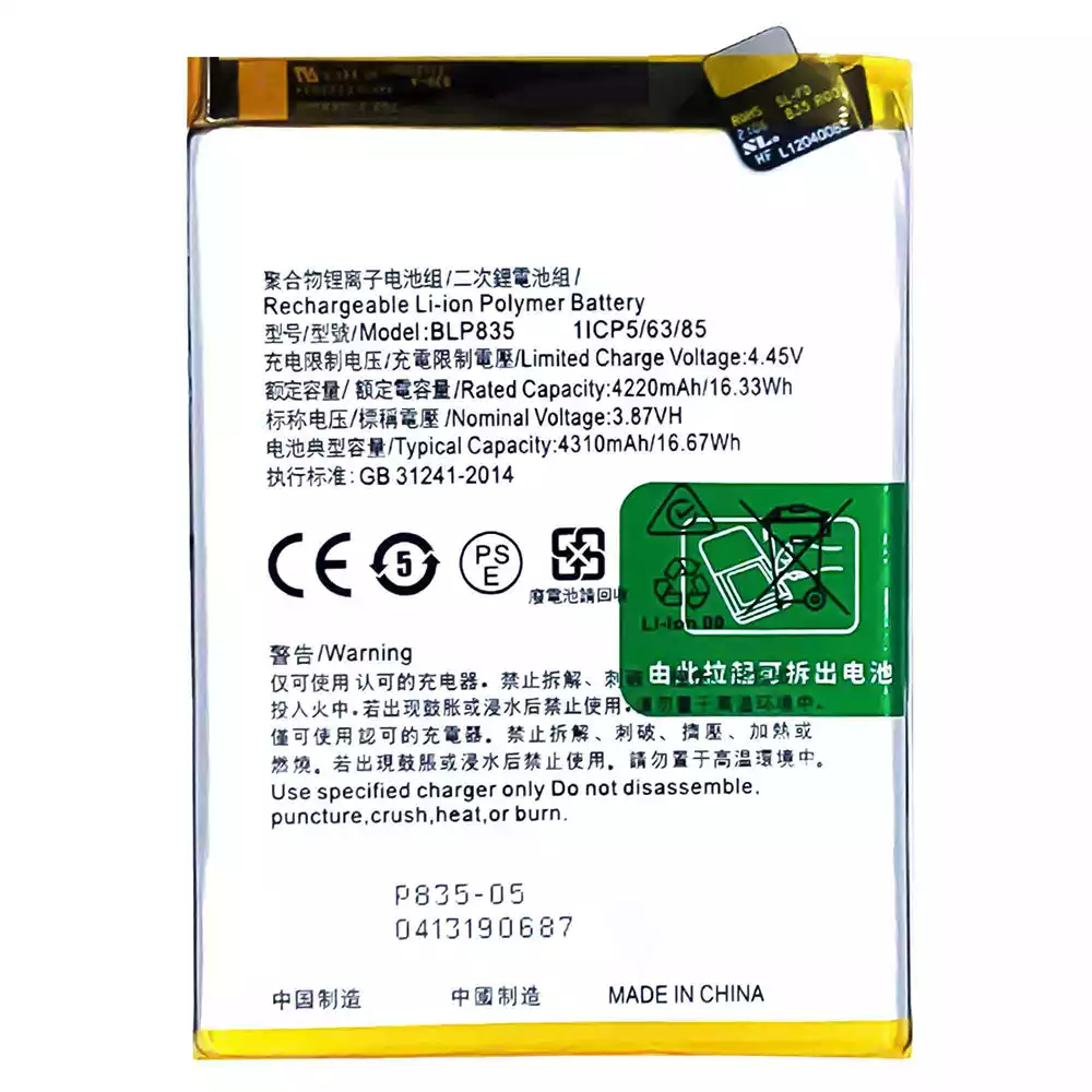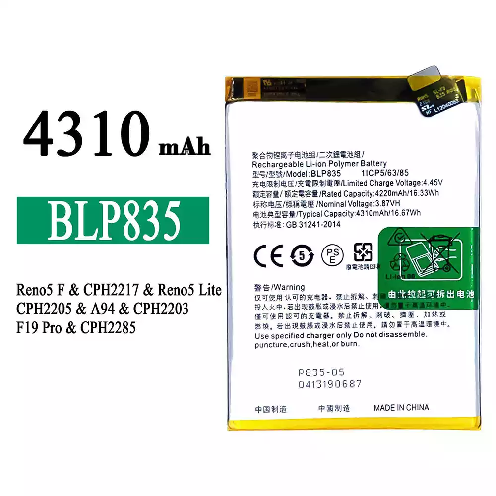 Акумулятор BLP835 для OPPO Reno5 F /Reno5 Lite /F19 Pro /A94 4G /CPH2217 /CPH2205 /CPH2203 /CPH2285