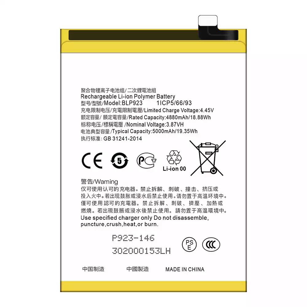 Акумулятор BLP923 для OPPO A57 2020 /A57 4G 2022 /A57 2022 /A77 4G /A77 5G /A77s /A78 5G /A97 5G / K10 5G / OnePlus Nord N20 SE /OnePlus Nord N300 5G /Realme C51